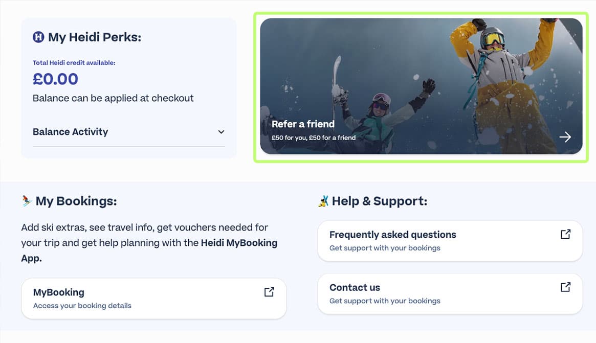Save on your next ski trip with Heidi's Recommend a Friend scheme!